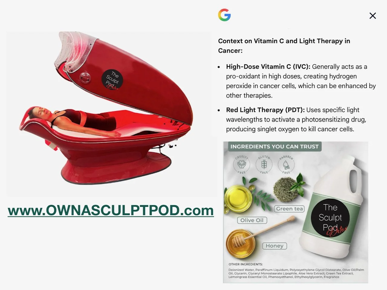 “Sculpt Pod makes no claims to cure any disease.”